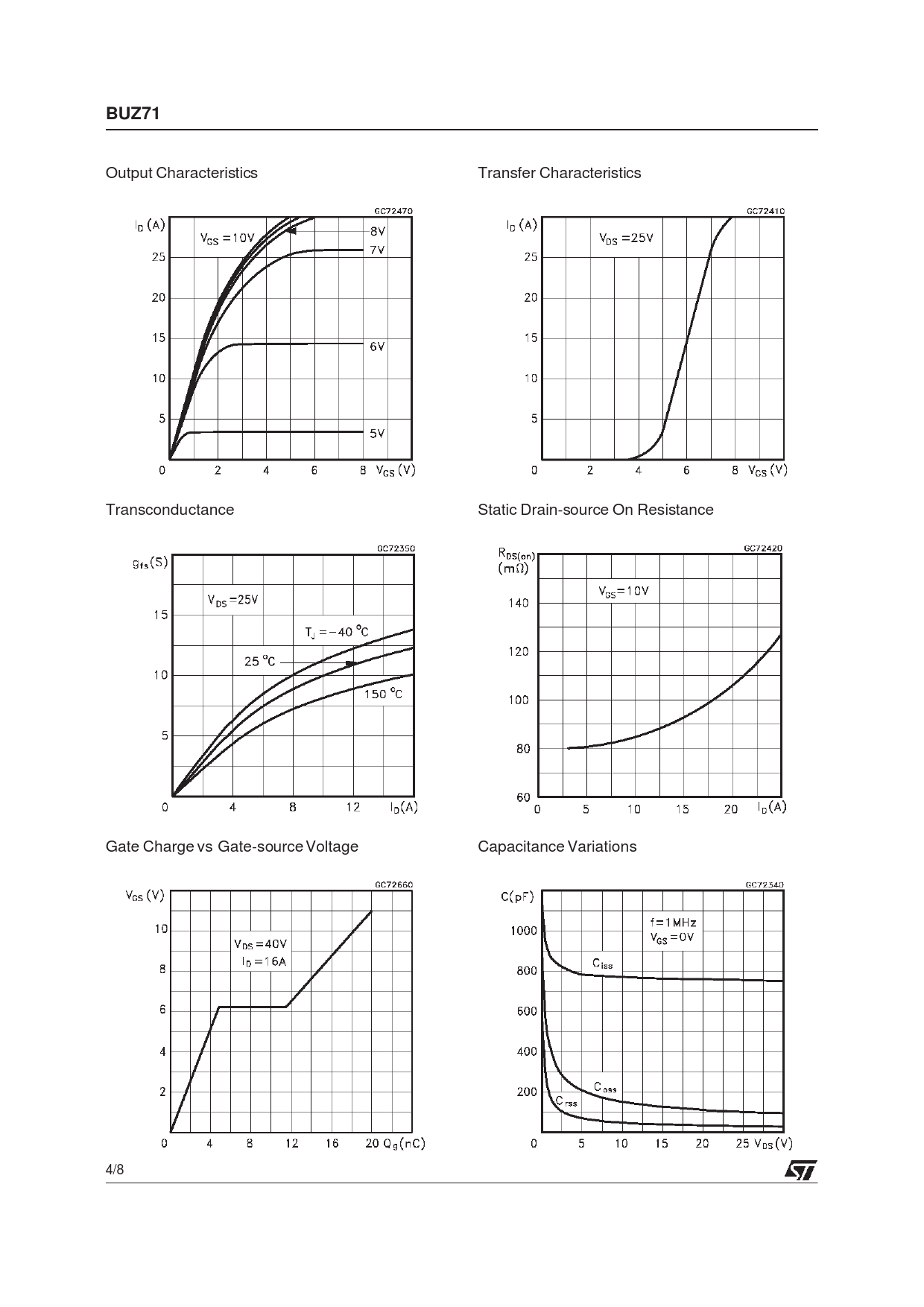 Output Characteristics Transfer Characteristics Transconductance Static Drain-source On Resistance Gate Charge vs Gate-source Voltage Capacitance Variations 4/8