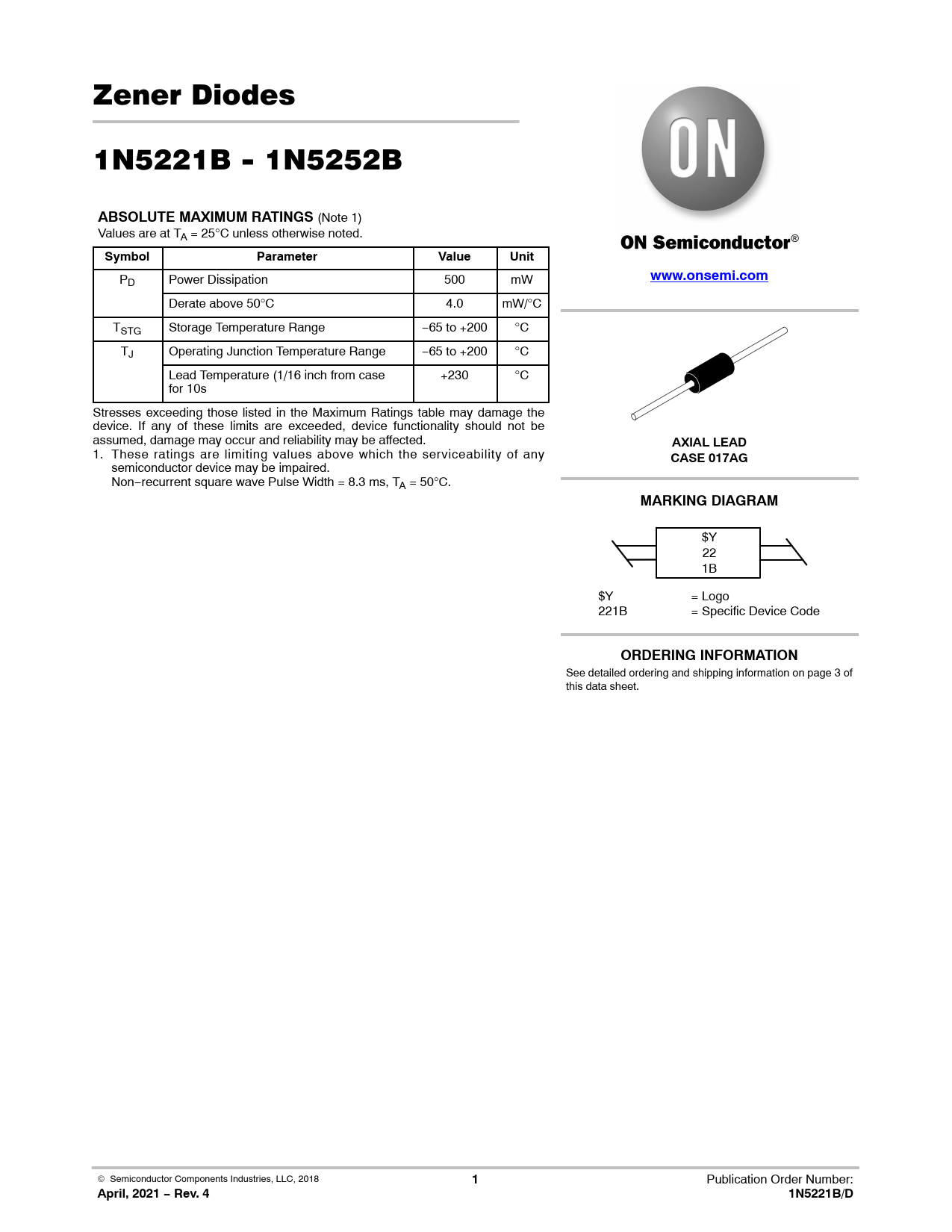 Datasheet 1N5221B -1N5252B (ON Semiconductor)