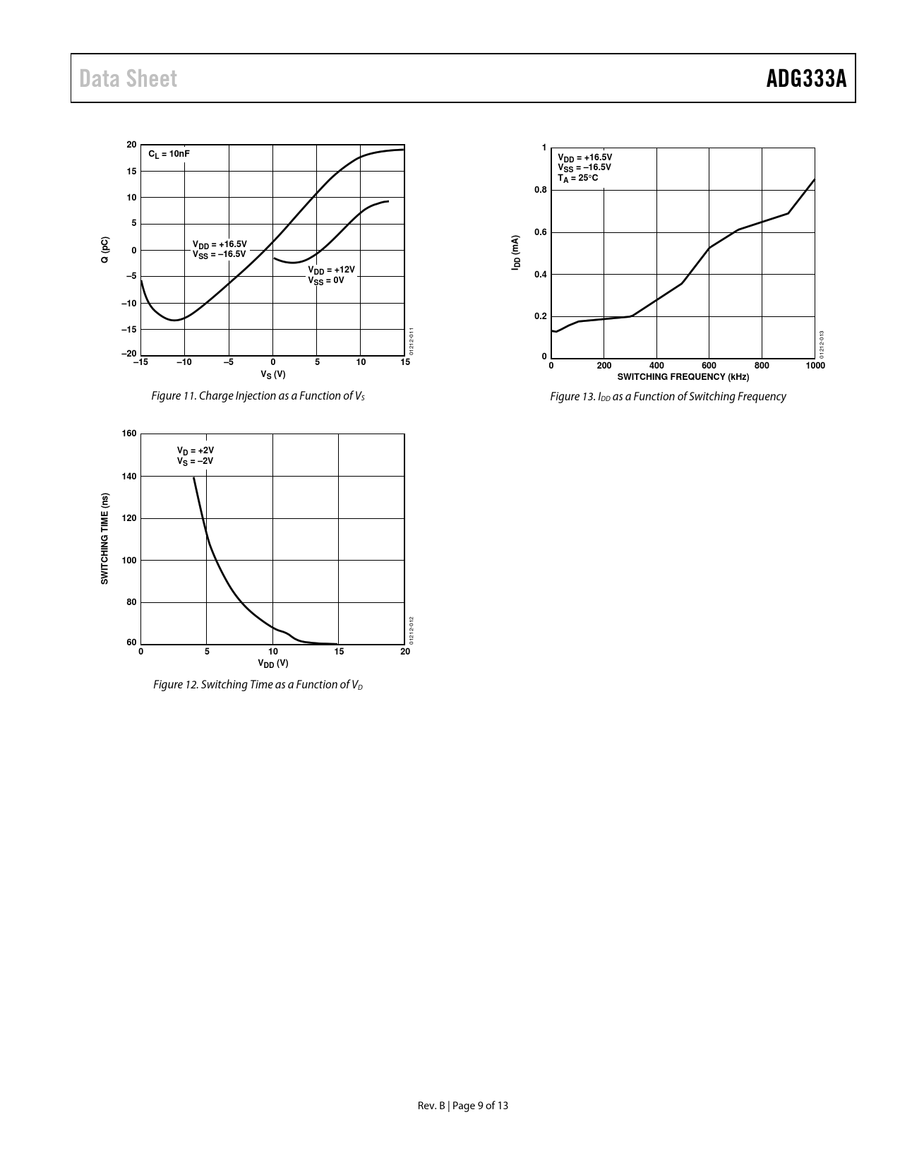 Data Sheet. ADG333A. CL = 10nF. VDD = +16.5V V. SS = –16.5V. TA = 25. 0.8. 0.6. VDD = +16.5V. VSS = –16.5V. (mA). Q (pC). I DD. DD = +12V. 0.4