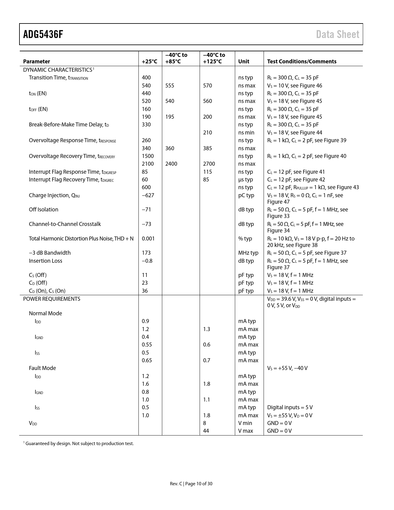 ADG5436F Data Sheet −40°C to Parameter +25°C +85°C +125°C Unit Test Conditions/Comments