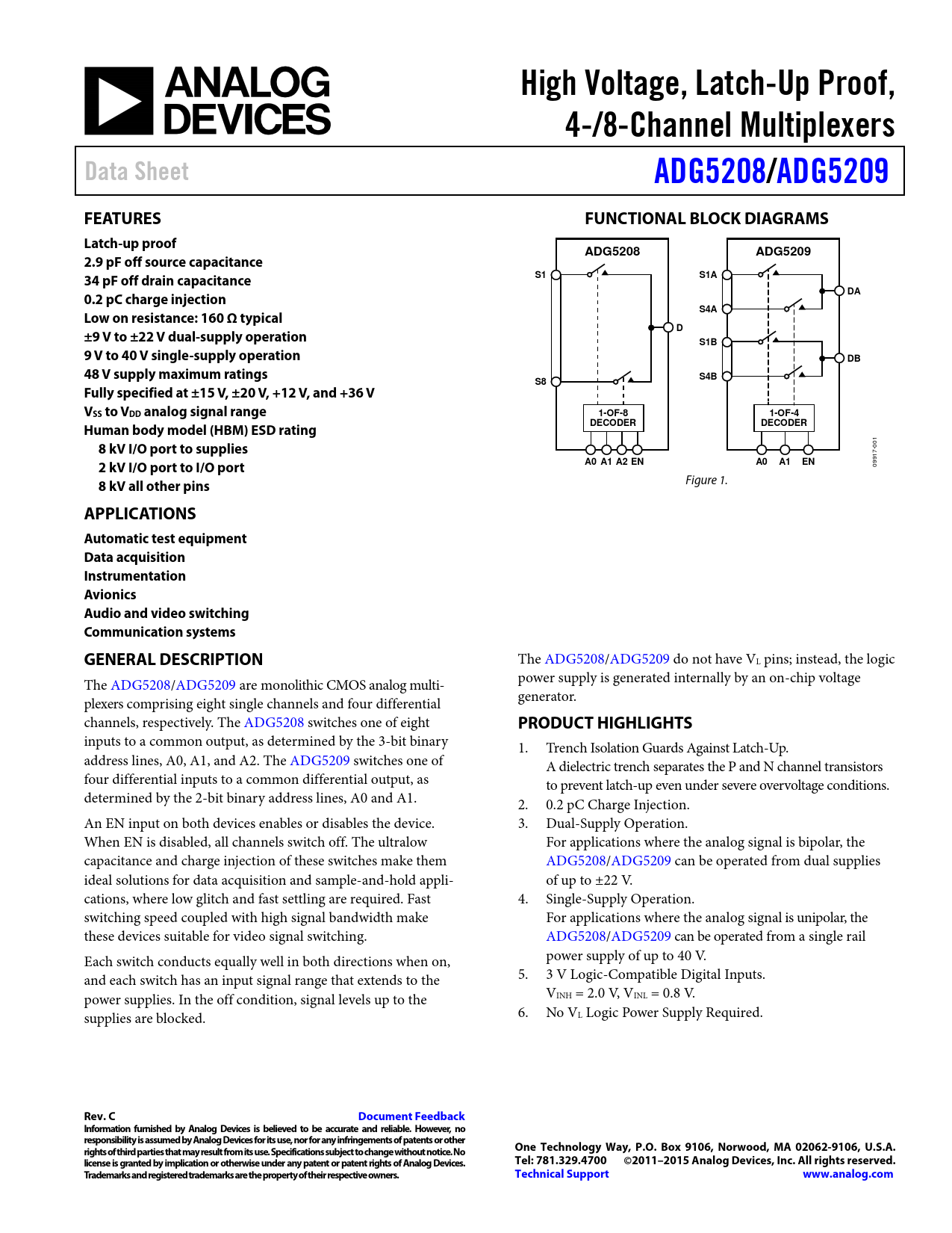 Datasheet ADG5208, ADG5209 (Analog Devices)