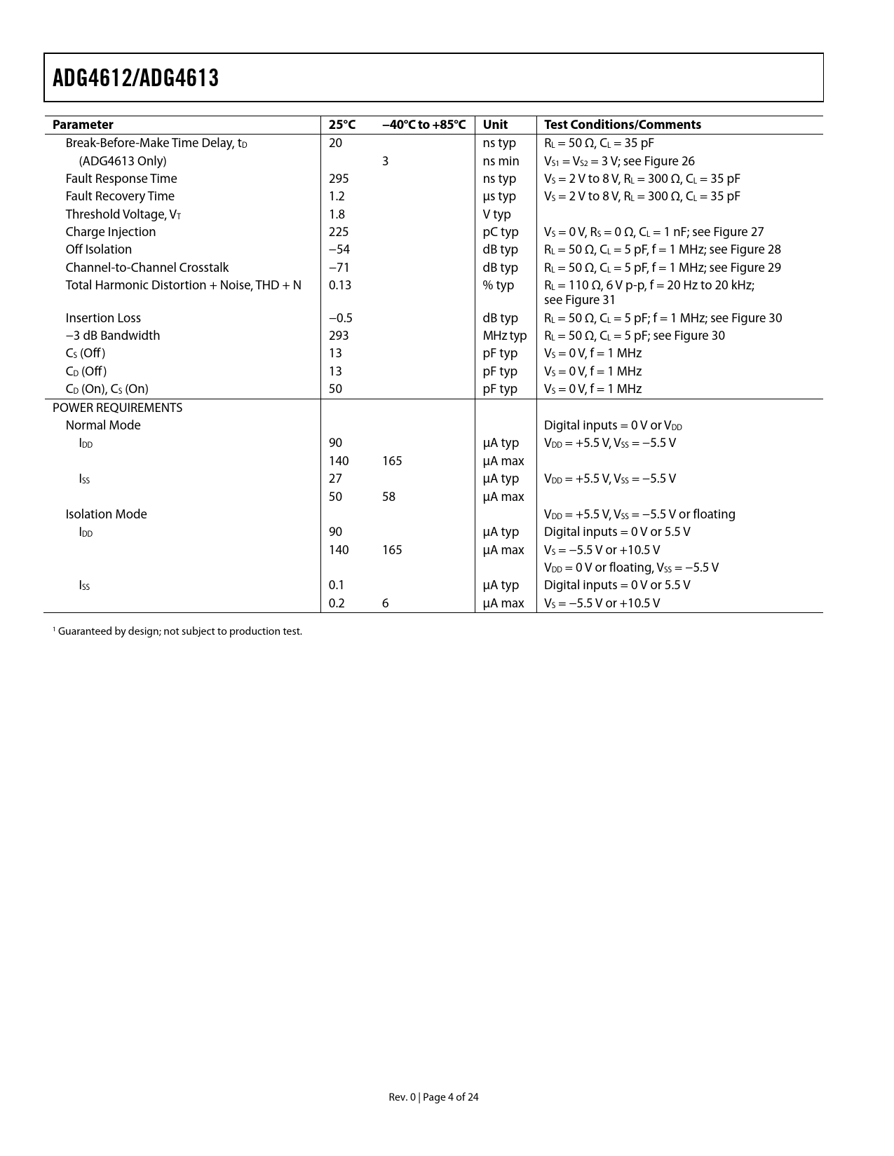 Páginas / Página24 / 4 — ADG4612/ADG4613. Parameter. 25°C. −40°C to +85°C. Unit. Test …
