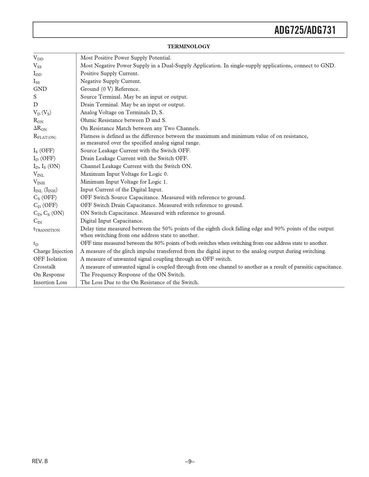 Páginas / Página17 / 9 — ADG725/ADG731. TERMINOLOGY