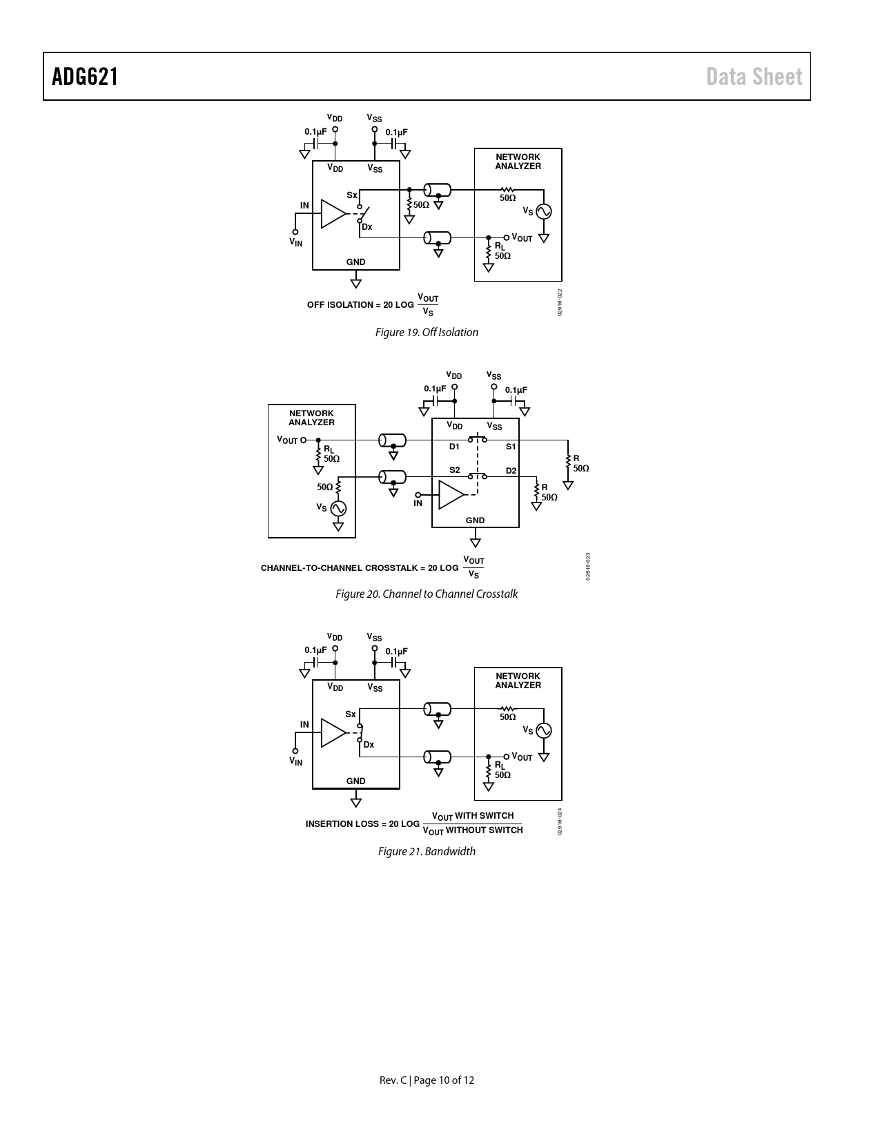 ADG621. Data Sheet. VDD. VSS. 0.1µF. NETWORK. ANALYZER. 50Ω. OUT. GND. VOUT. OFF ISOLATION = 20 LOG. CHANNEL-TO-CHANNEL CROSSTALK = 20 LOG