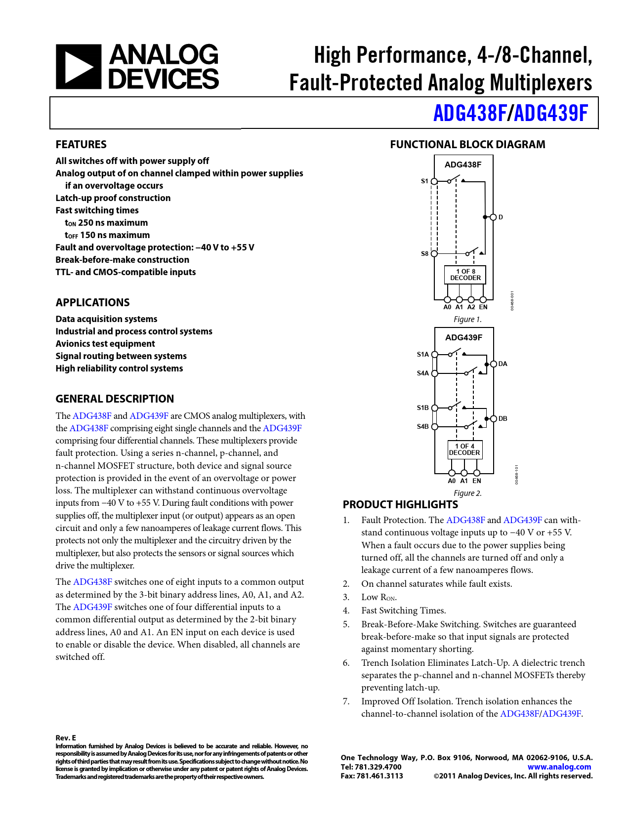 Datasheet ADG438F, ADG439F (Analog Devices)