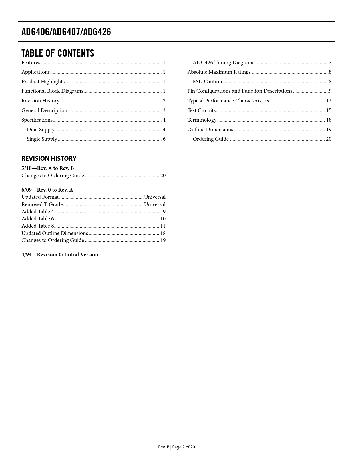 ADG406/ADG407/ADG426. TABLE OF CONTENTS. REVISION HISTORY. 5/10—Rev. A to Rev. B. 6/09—Rev. 0 to Rev. A