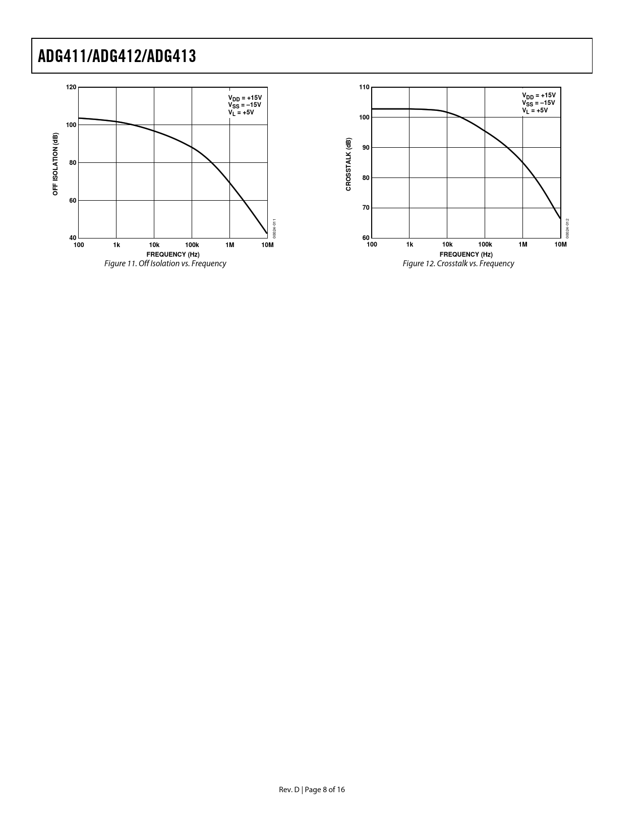 ADG411/ADG412/ADG413. 120. 110. DD = +15V. SS = –15V. L = +5V. 100. ALK (dB) T. OLATION (dB). CROS. OFF IS. 10k. 100k. 10M. FREQUENCY (Hz)