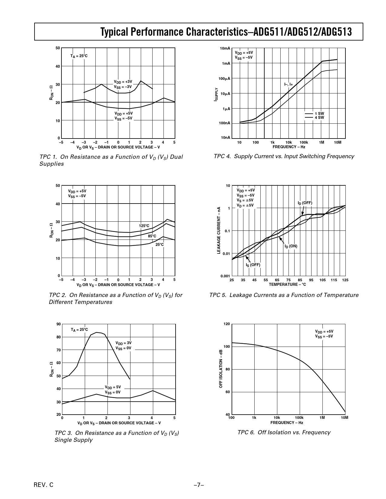 TPC 3. On Resistance as a Function of V TPC 6. Off Isolation vs. Frequency D (VS) Single Supply REV. C –7–