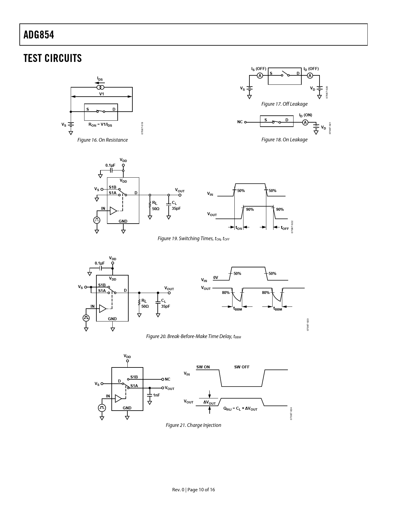 16 /10 — ADG854. TEST CIRCUITS. IS (OFF). ID (OFF). IDS. ID (ON). RON = V1/IDS. …