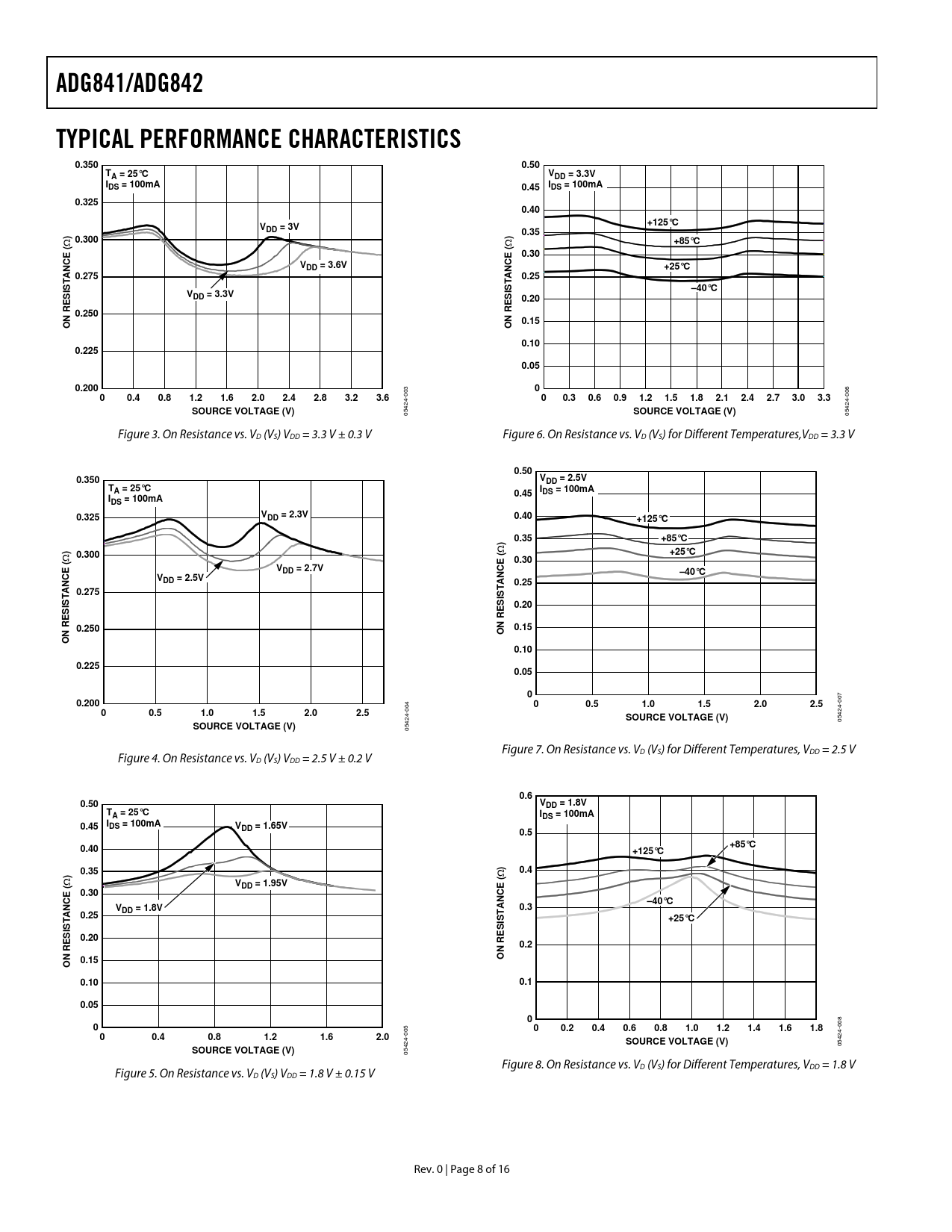 Páginas / Página16 / 8 — ADG841/ADG842. TYPICAL PERFORMANCE CHARACTERISTICS. 0.350. 0.50. TA = …