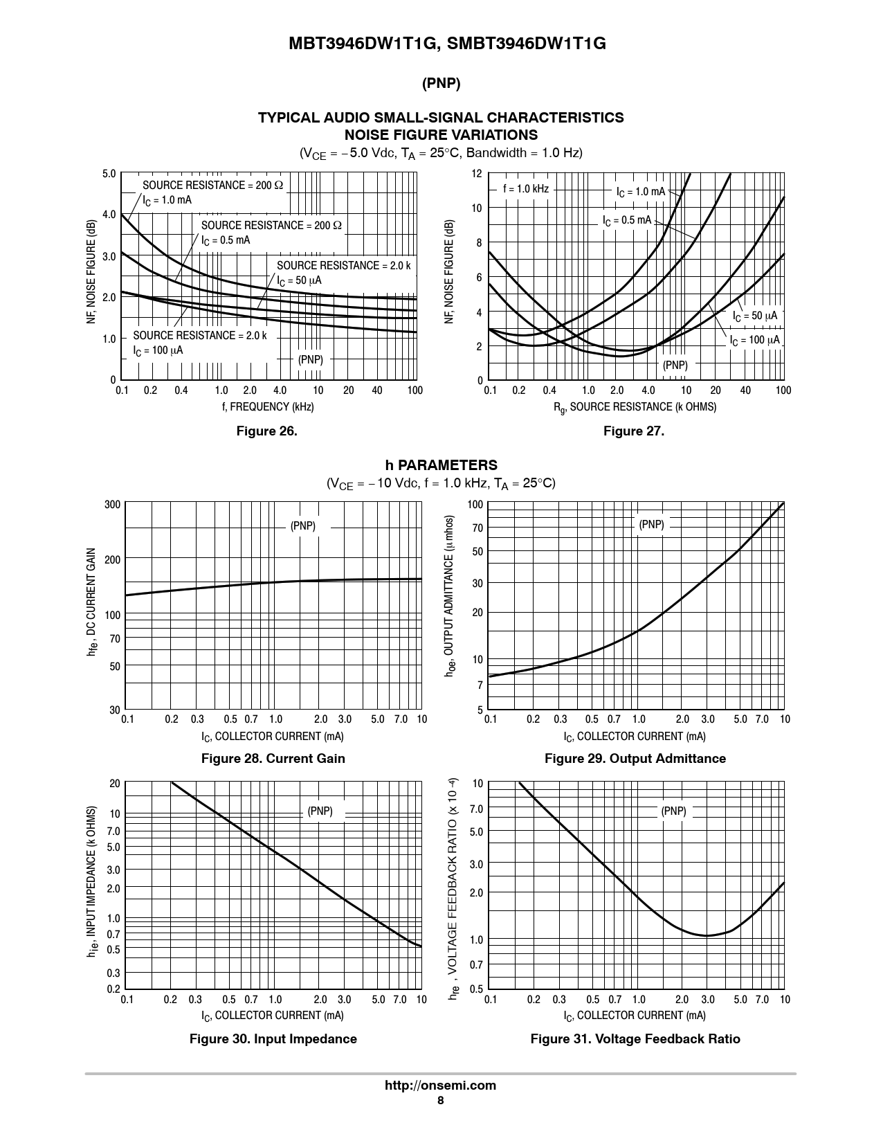 MBT3946DW1T1G, SMBT3946DW1T1G. (PNP). TYPICAL AUDIO SMALL-SIGNAL CHARACTERISTICS. NOISE FIGURE VARIATIONS. Figure 26. Figure 27