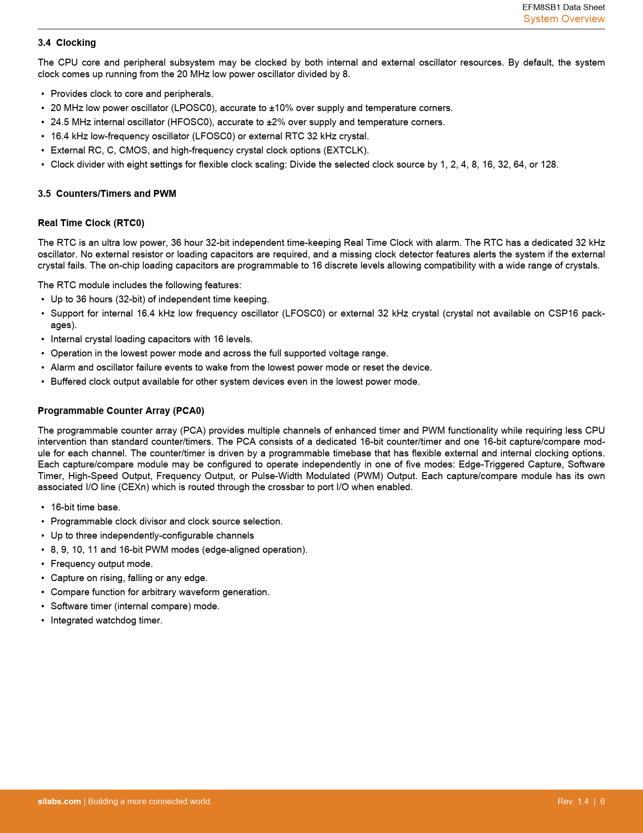 3.4 Clocking. 3.5 Counters/Timers and PWM. Real Time Clock (RTC0). Programmable Counter Array (PCA0). silabs.com