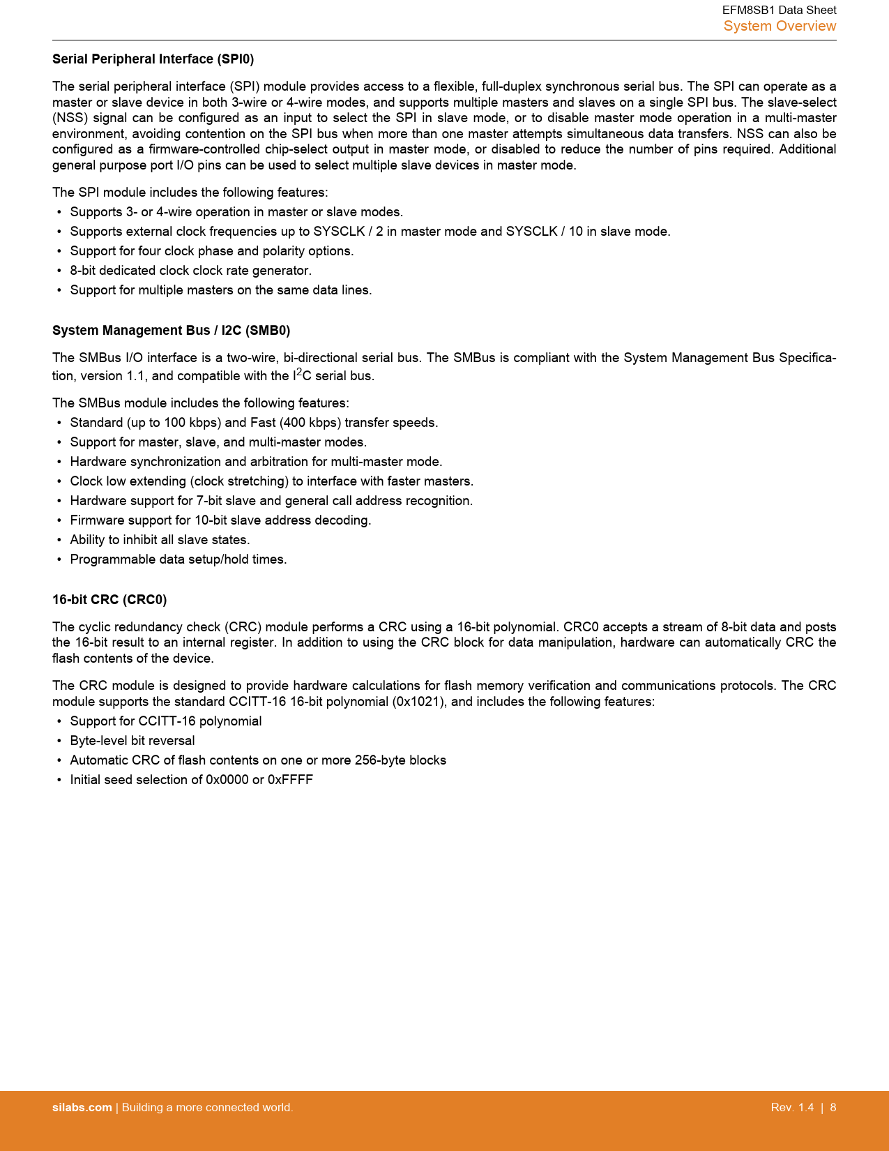 Serial Peripheral Interface (SPI0). System Management Bus / I2C (SMB0). 16-bit CRC (CRC0). silabs.com