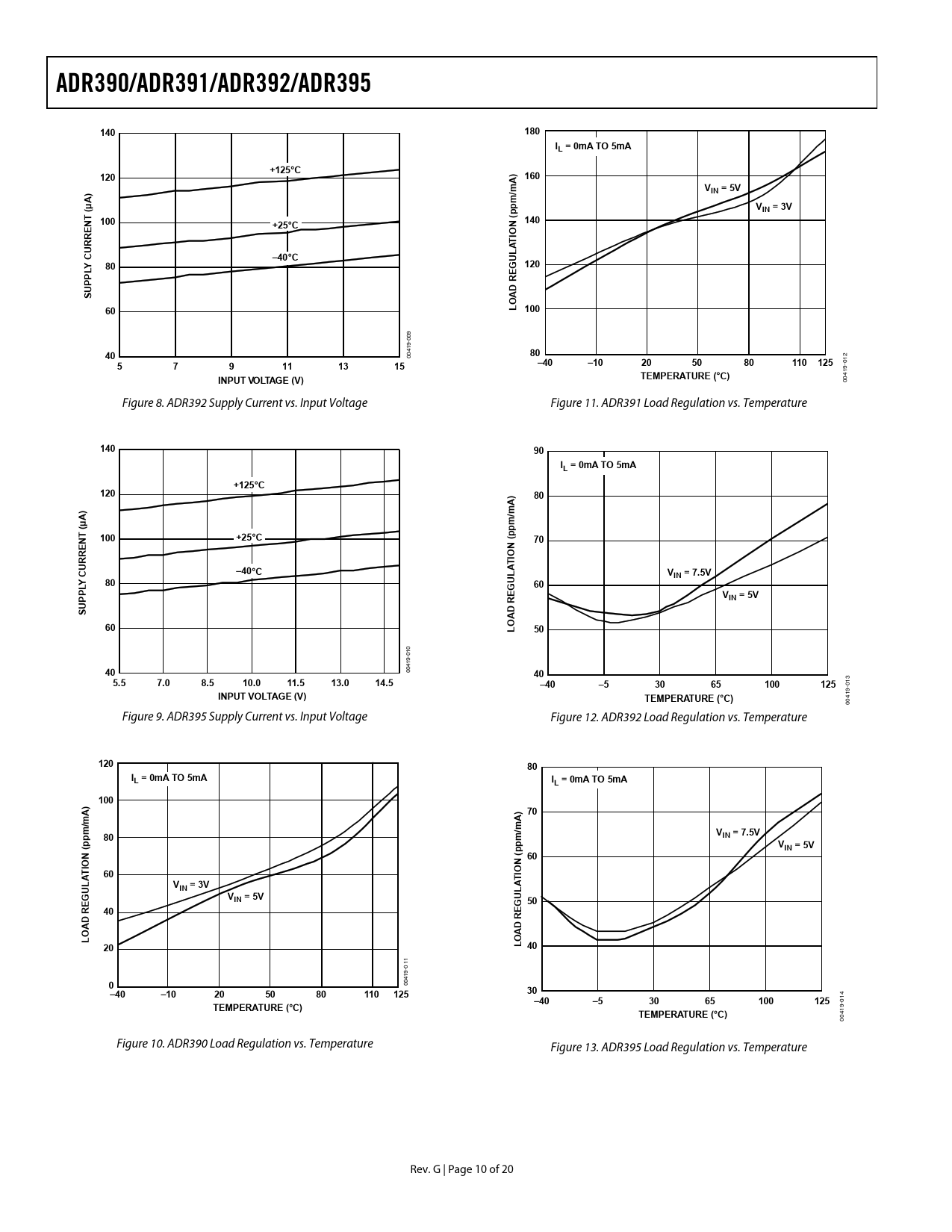 00 Figure 8. ADR392 Supply Current vs. Input Voltage Figure 11. ADR391 Load Regulation vs. Temperature