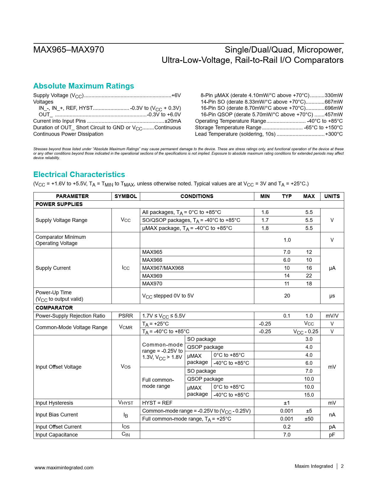 Datasheet MAX965, MAX966, MAX967, MAX968, MAX969, MAX970 (Maxim) - 2