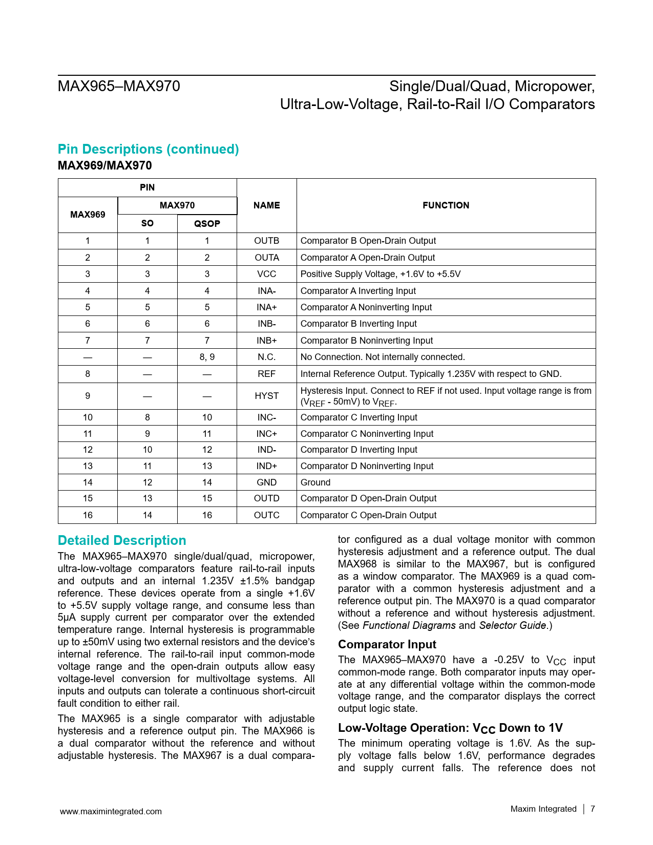 Pin Descriptions (continued) MAX969/MAX970 PIN MAX970 NAME FUNCTION MAX969 QSOP Detailed Description Comparator Input