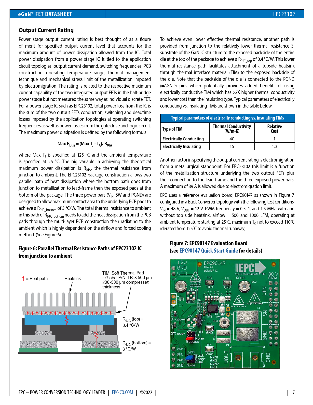 eGaN® FET DATASHEET. Output Current Rating. Typical parameters of electrically conducting vs. insulating TIMs. Type of TIM