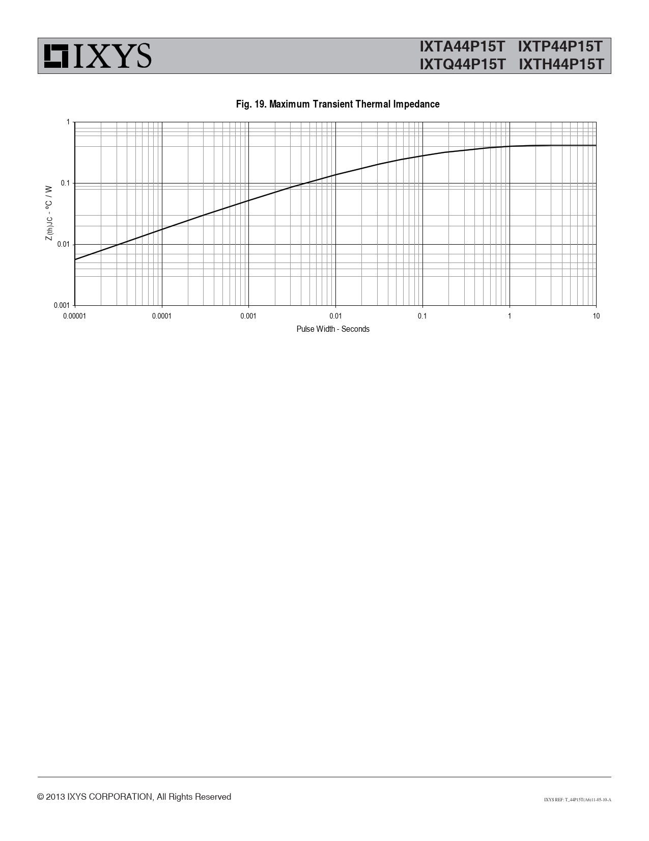 1 0.1 / W C º - )JC Z(th 0.01 0.001 0.00001 0.0001 0.001 0.01 0.1 1 10 Pulse Width - Seconds © 2013 IXYS CORPORATION, All Rights Reserved IXYS REF: T_44P15T(A6)11-05-10-A