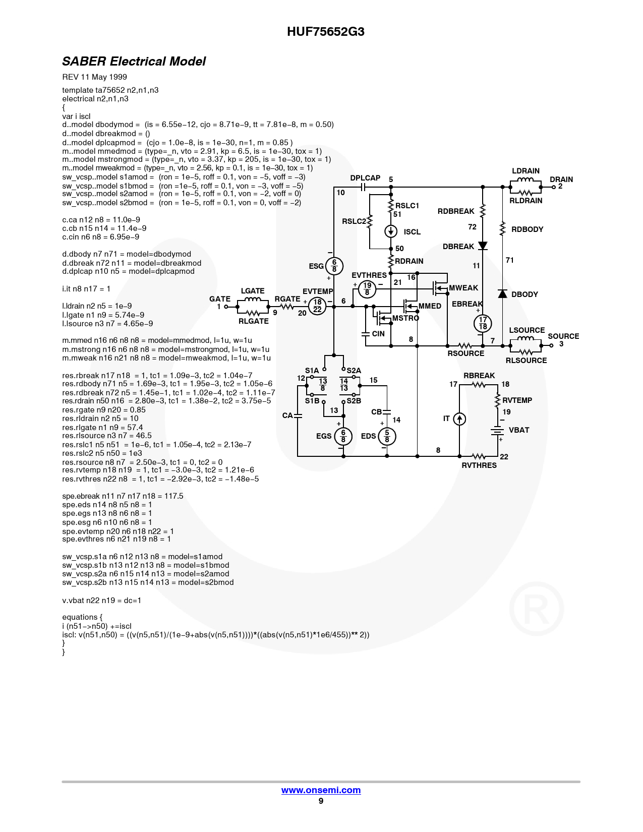 | Páginas / Página | 12 / 9 — HUF75652G3. SABER Electrical Model. LDRAIN. DPLCAP 5. DRAIN. RLDRAIN. … |