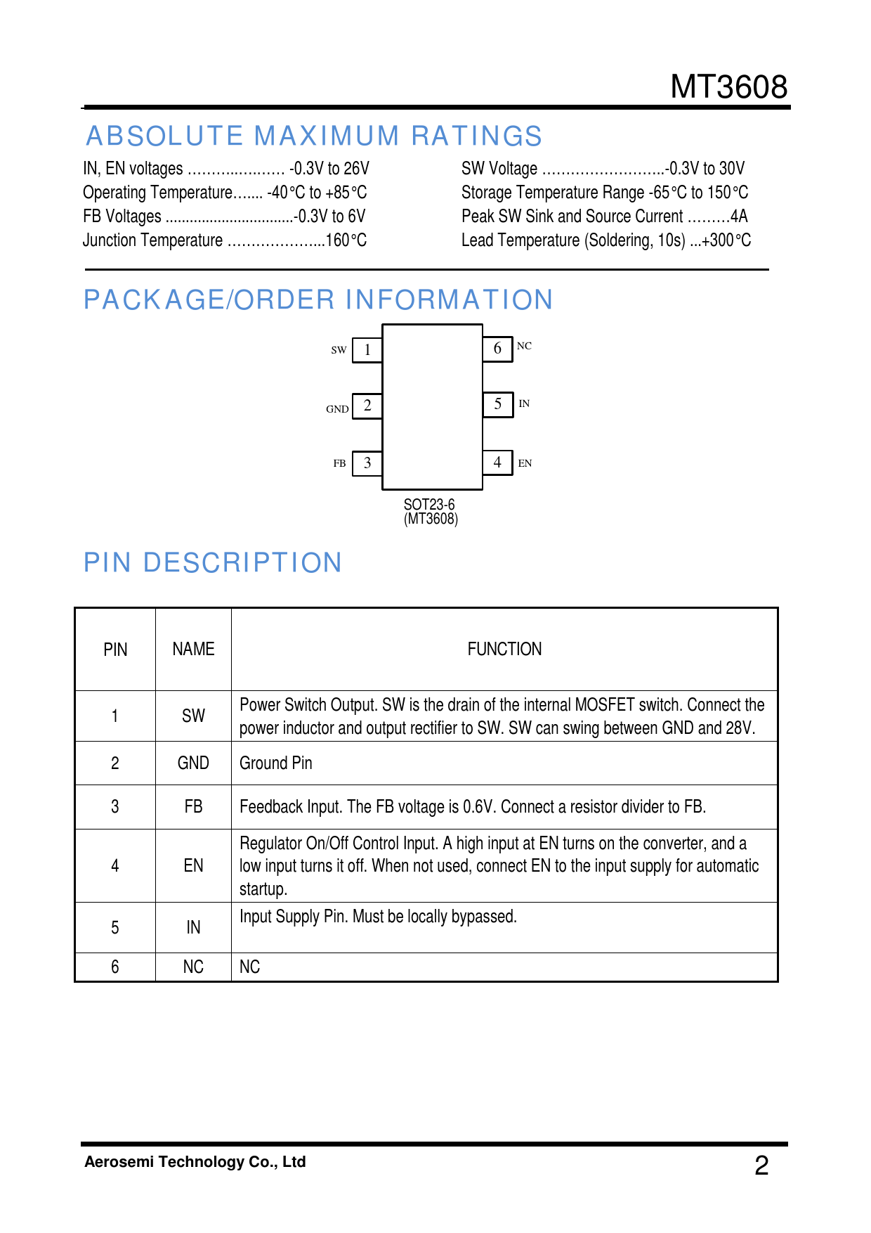 Datasheet MT3608 (Aerosemi Technology) - 2