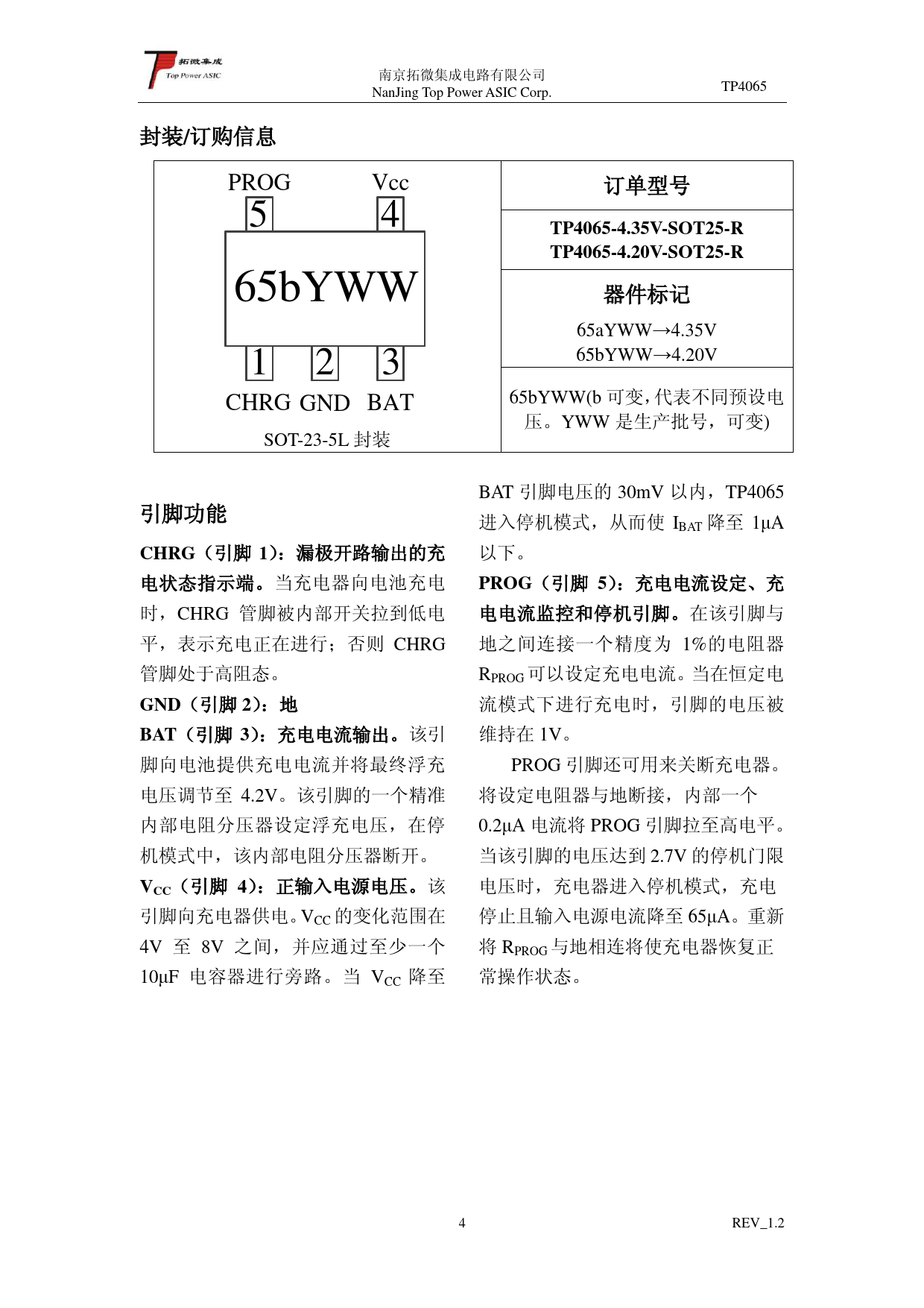 Datasheet TP4065 (Top Power ASIC) - 4