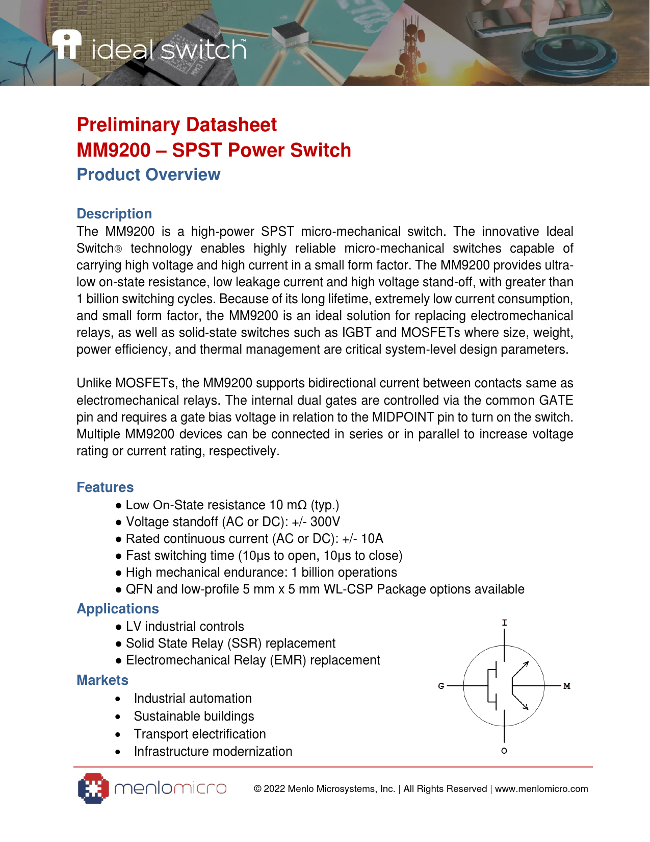 Preliminary Datasheet MM9200 (Menlo Micro)
