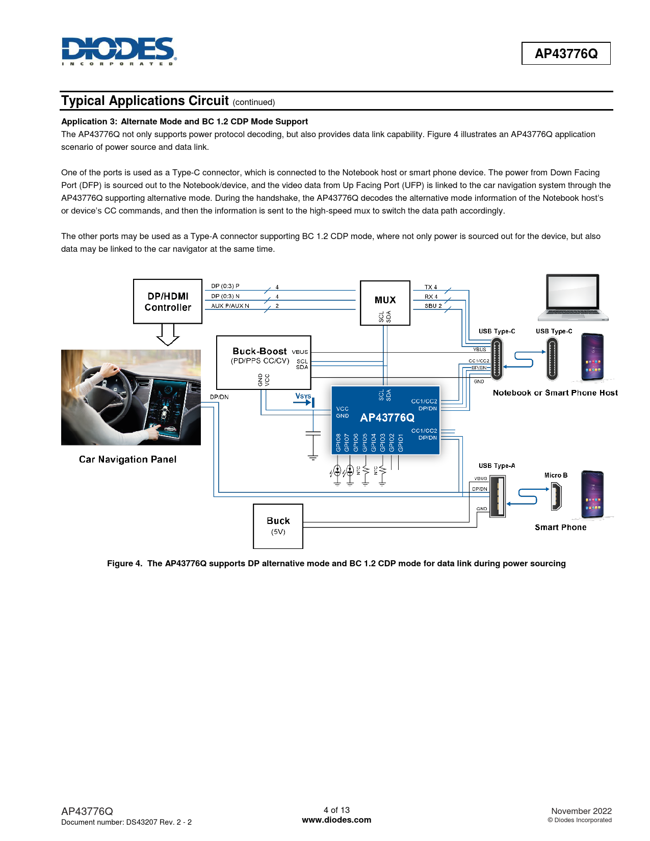 AP43776Q. Typical Applications Circuit. Application 3:. Alternate Mode and BC 1.2 CDP Mode Support