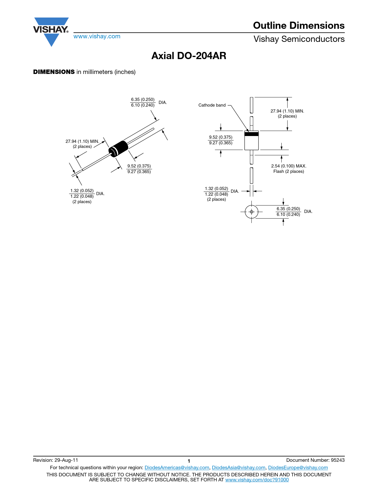 Outline Dimensions Axial DO-204AR DIMENSIONS