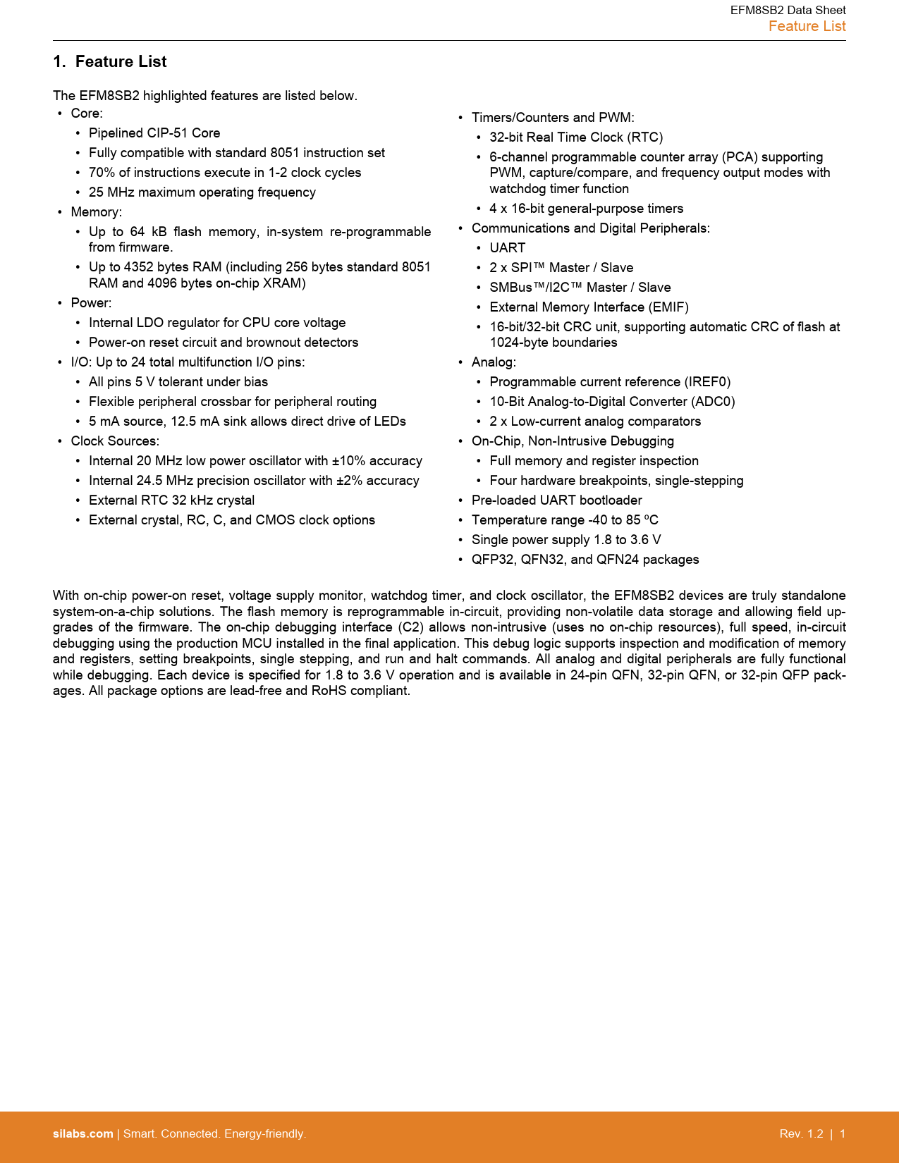Páginas / Página55 / 2 — 1. Feature List. silabs.com