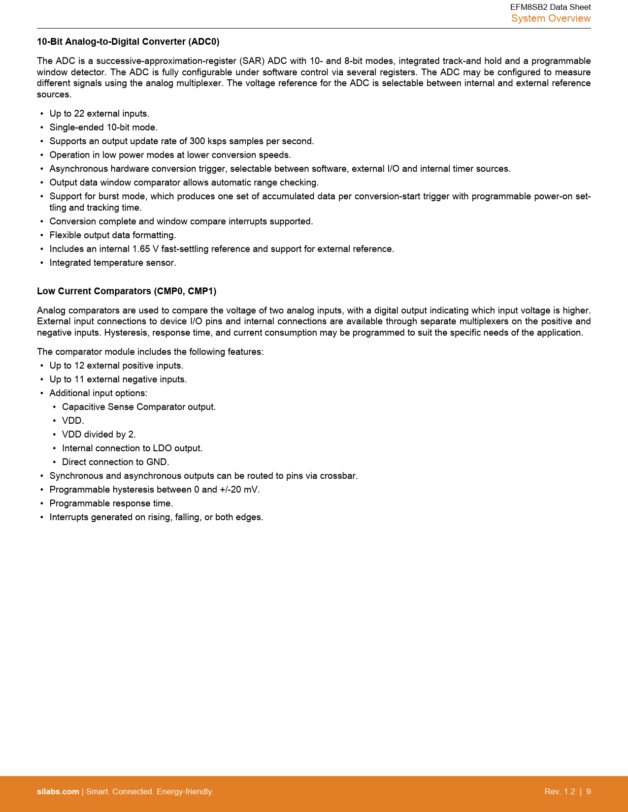 10-Bit Analog-to-Digital Converter (ADC0) Low Current Comparators (CMP0, CMP1) silabs.com