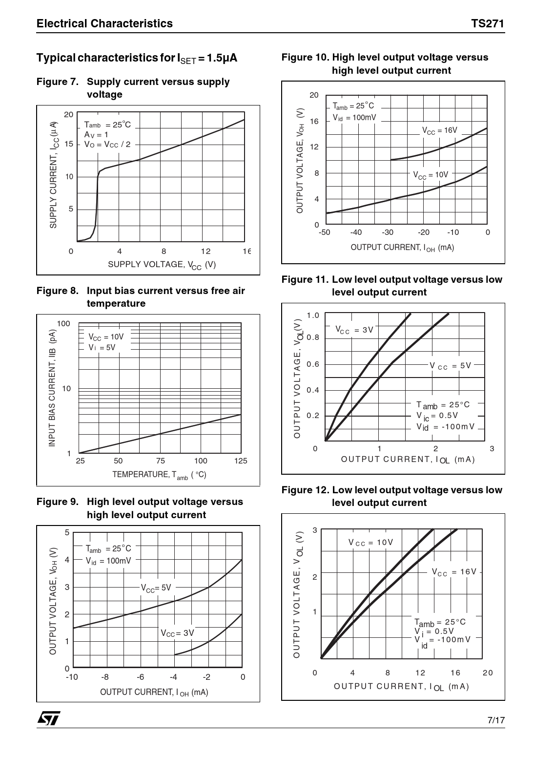 Páginas / Página17 / 7 — Electrical Characteristics. TS271. Typical characteristics for I. Figure …