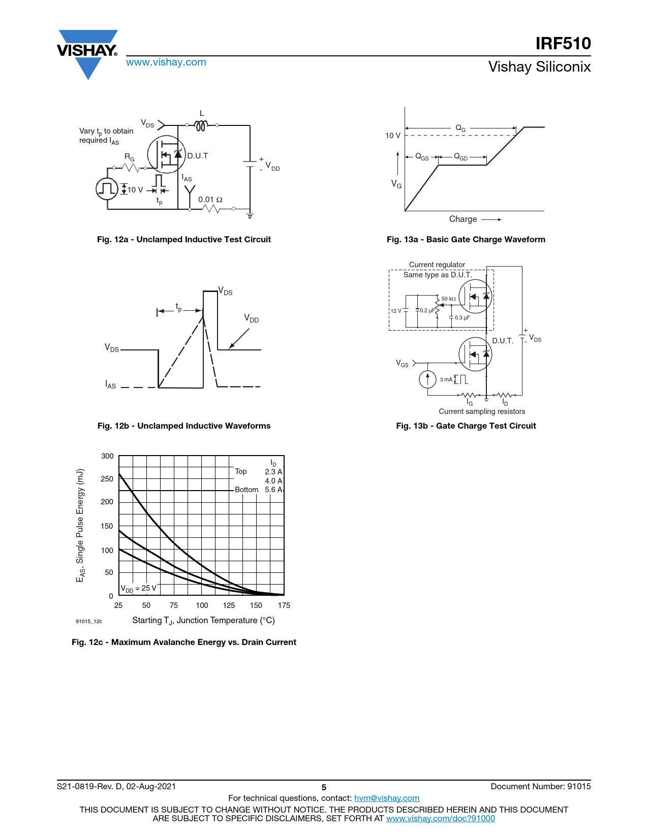 IRF510. Fig. 12a - Unclamped Inductive Test Circuit. Fig. 13a - Basic Gate Charge Waveform