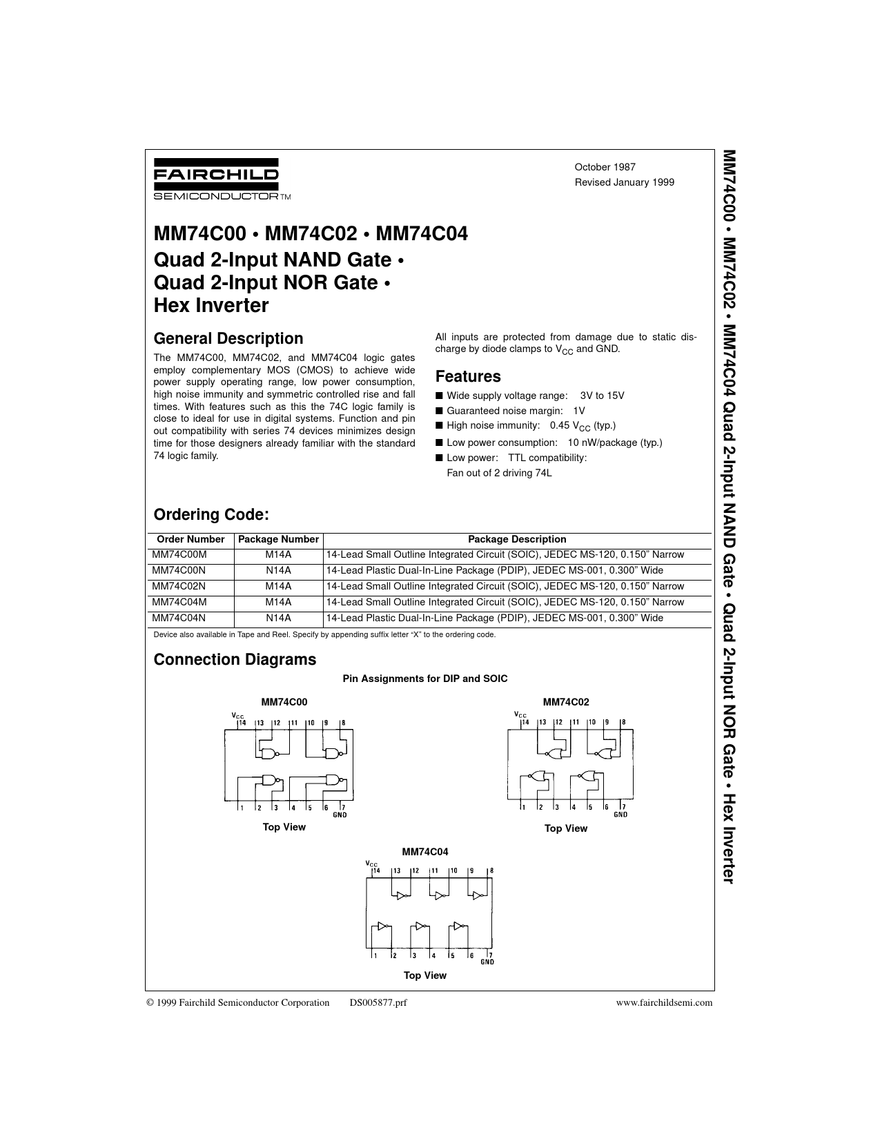 MM74C00. • MM74C02. MM74C00 • MM74C02 • MM74C04 Quad 2-Input NAND Gate • Quad 2-Input NOR Gate • Hex Inverter. • MM