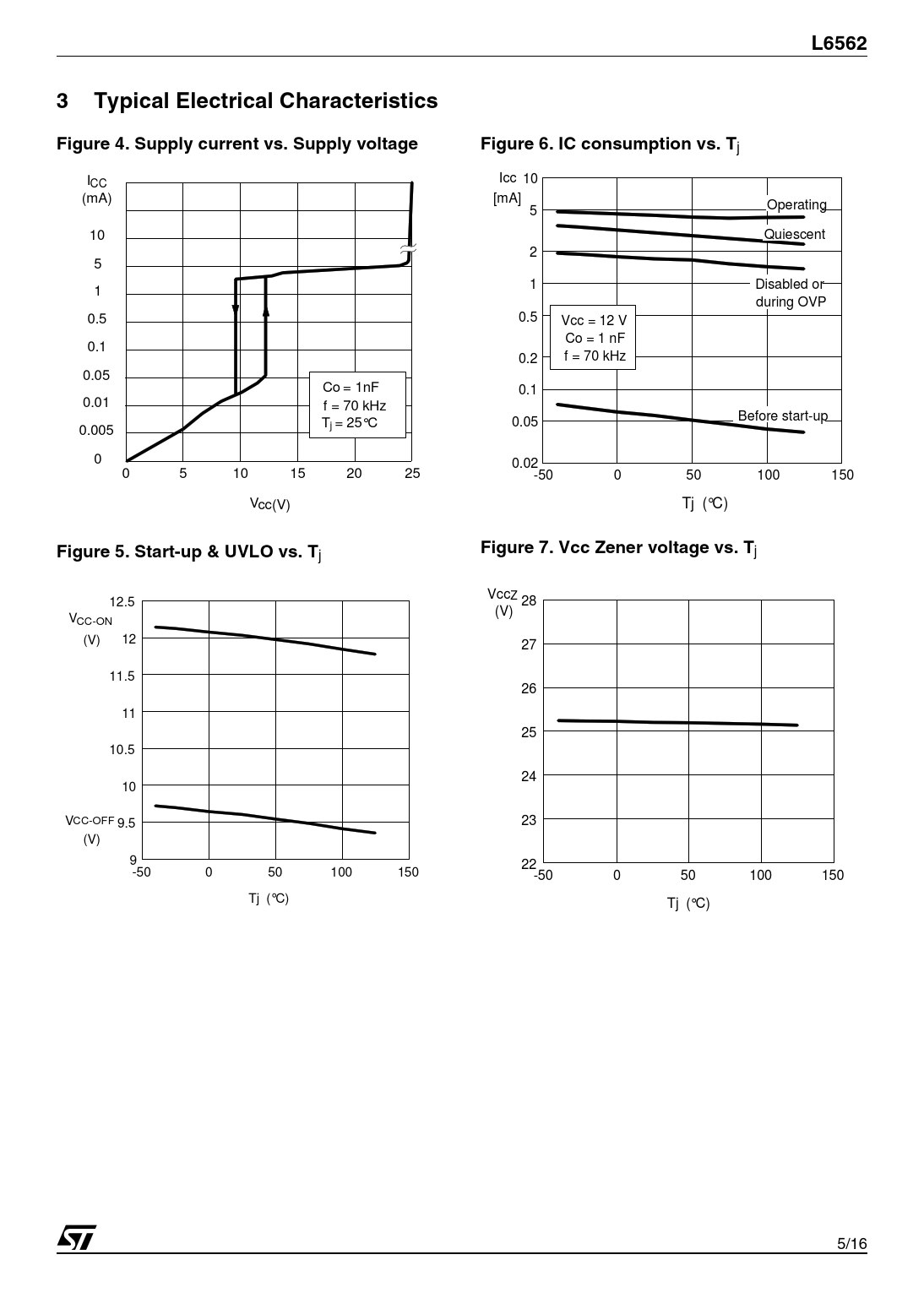 L6562 3 Typical Electrical Characteristics Figure 4. Supply current vs. Supply voltage Figure 6. IC consumption vs. T