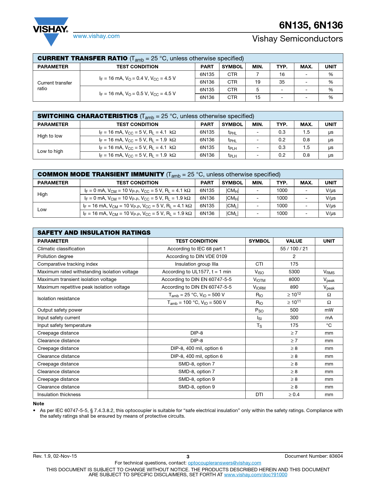 Datasheet 6N135, 6N136 (Vishay) - 3