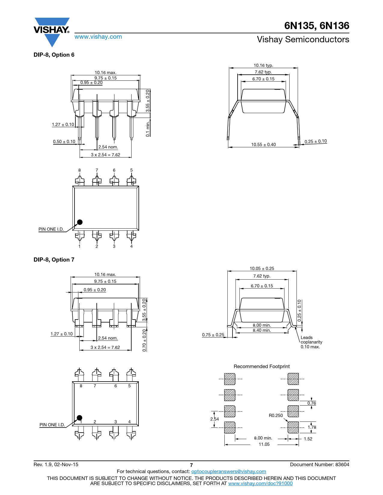 | Páginas / Página | 10 / 7 — 6N135, 6N136. DIP-8, Option 6. DIP-8, Option 7 |