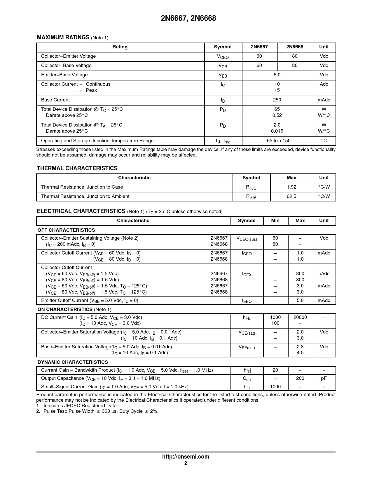 Datasheet 2N6667, 2N6668 (ON Semiconductor) - 2