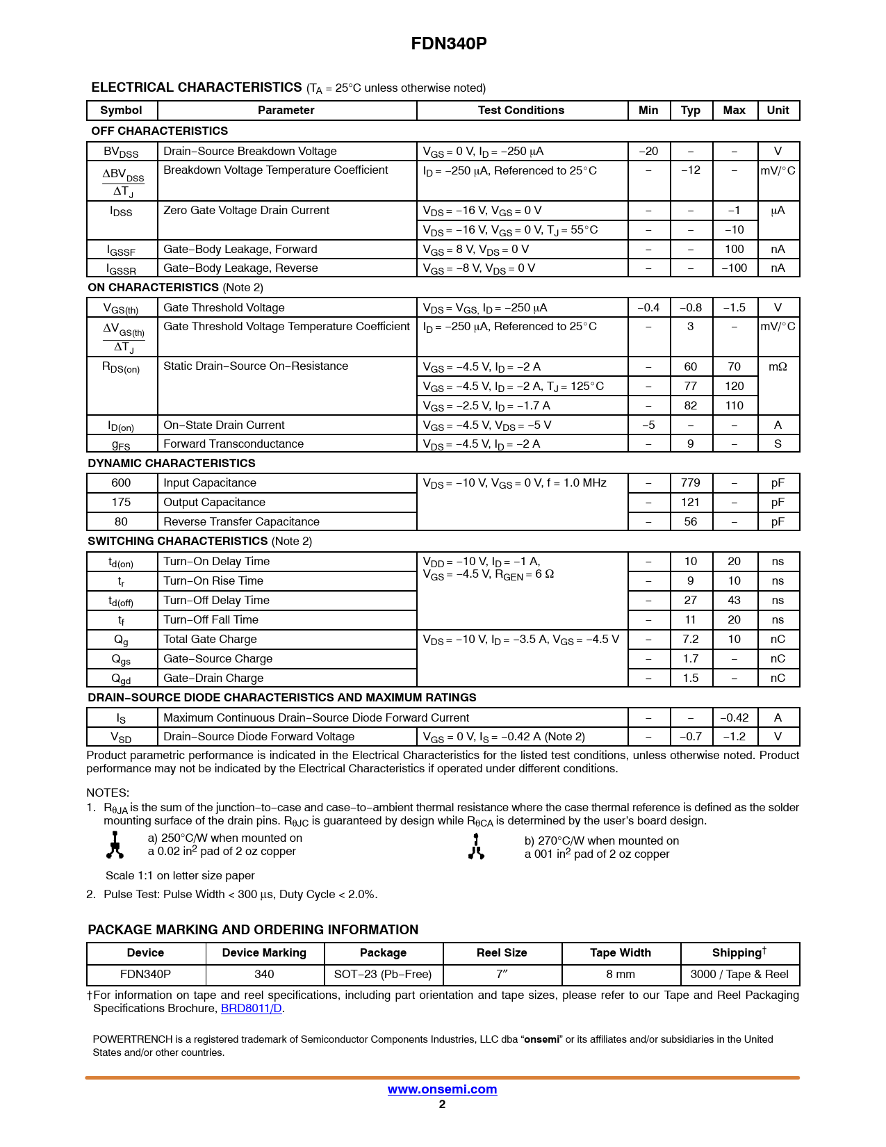 Datasheet FDN340P (ON Semiconductor) - 2