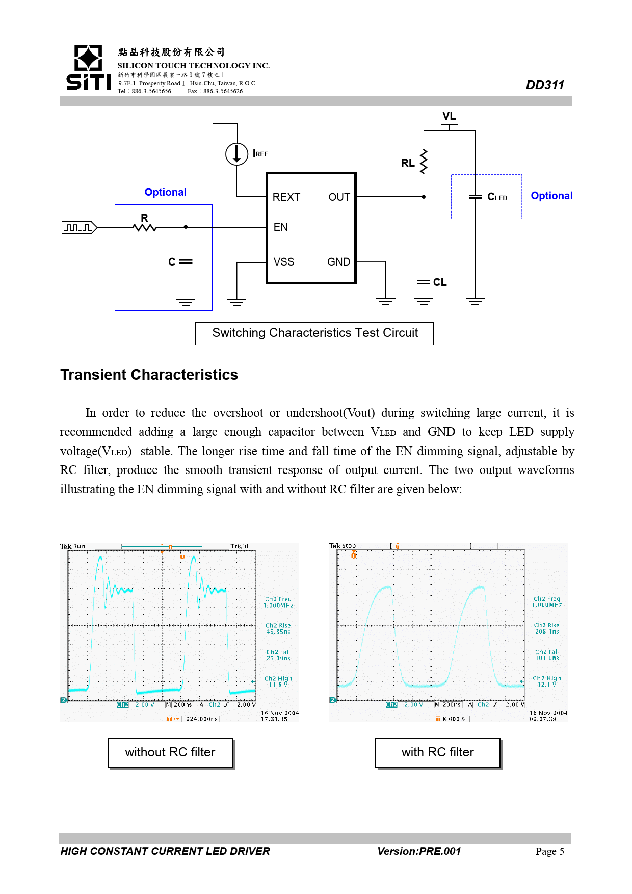 SILICON TOUCH TECHNOLOGY INC. DD311. IREF. Optional. CLED. Transient Characteristics. HIGH CONSTANT CURRENT LED DRIVER