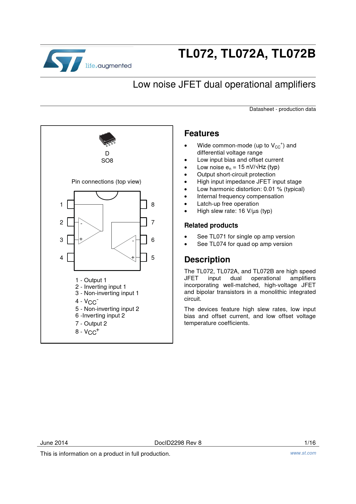 Datasheet TL072, TL072A, TL072B STMicroelectronics