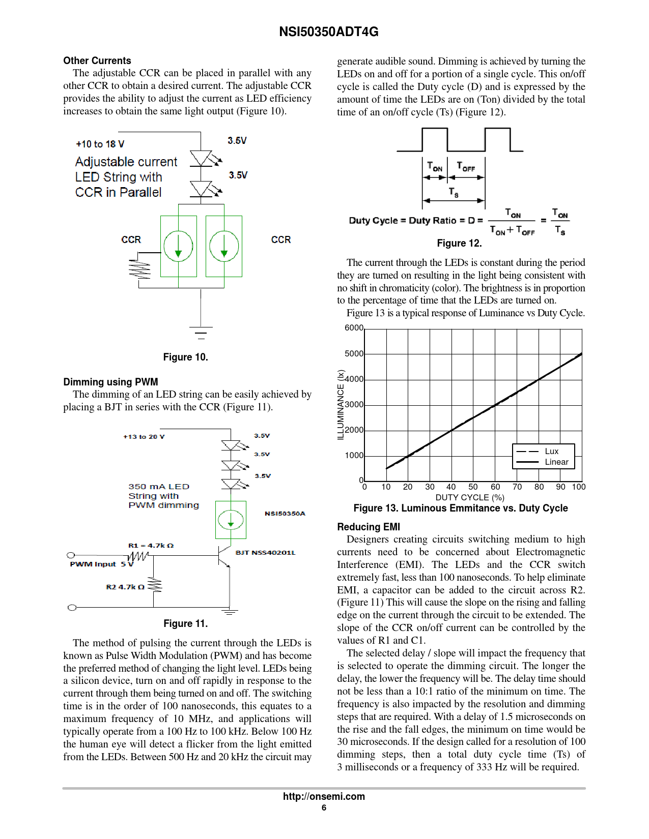 NSI50350ADT4G Other Currents Figure 12 Figure 10 Dimming using PWM Figure 13 Luminous Emmitance vs Duty Cycle Reducing EMI