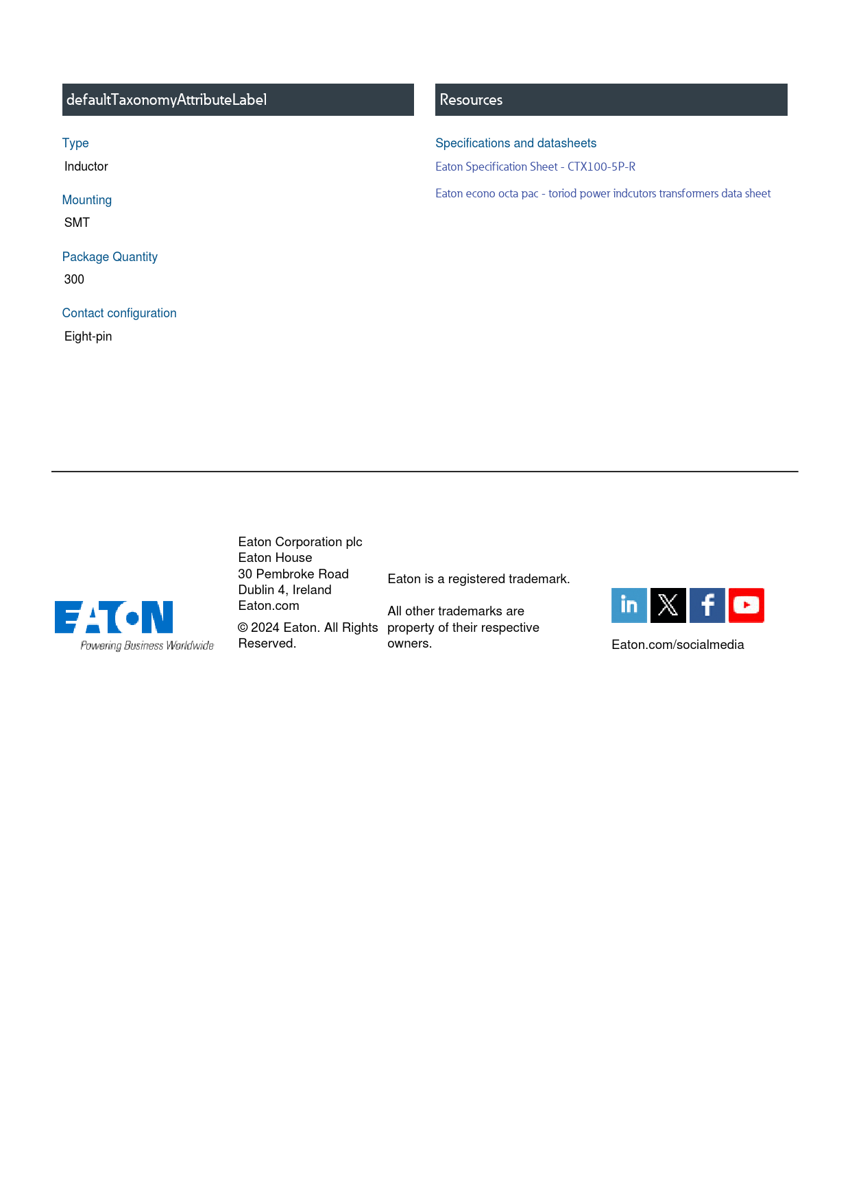 defaultTaxonomyAttributeLabel. Resources. Type. Specifications. and. datasheets. Inductor. Eaton. Specification. Sheet. -. CTX100-5P-R. Eaton