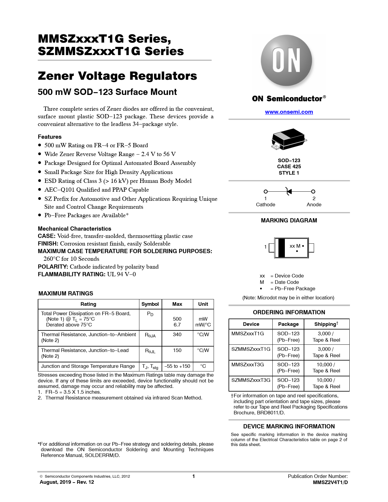 August, 2019 − Rev. 12 MMSZ2V4T1/D