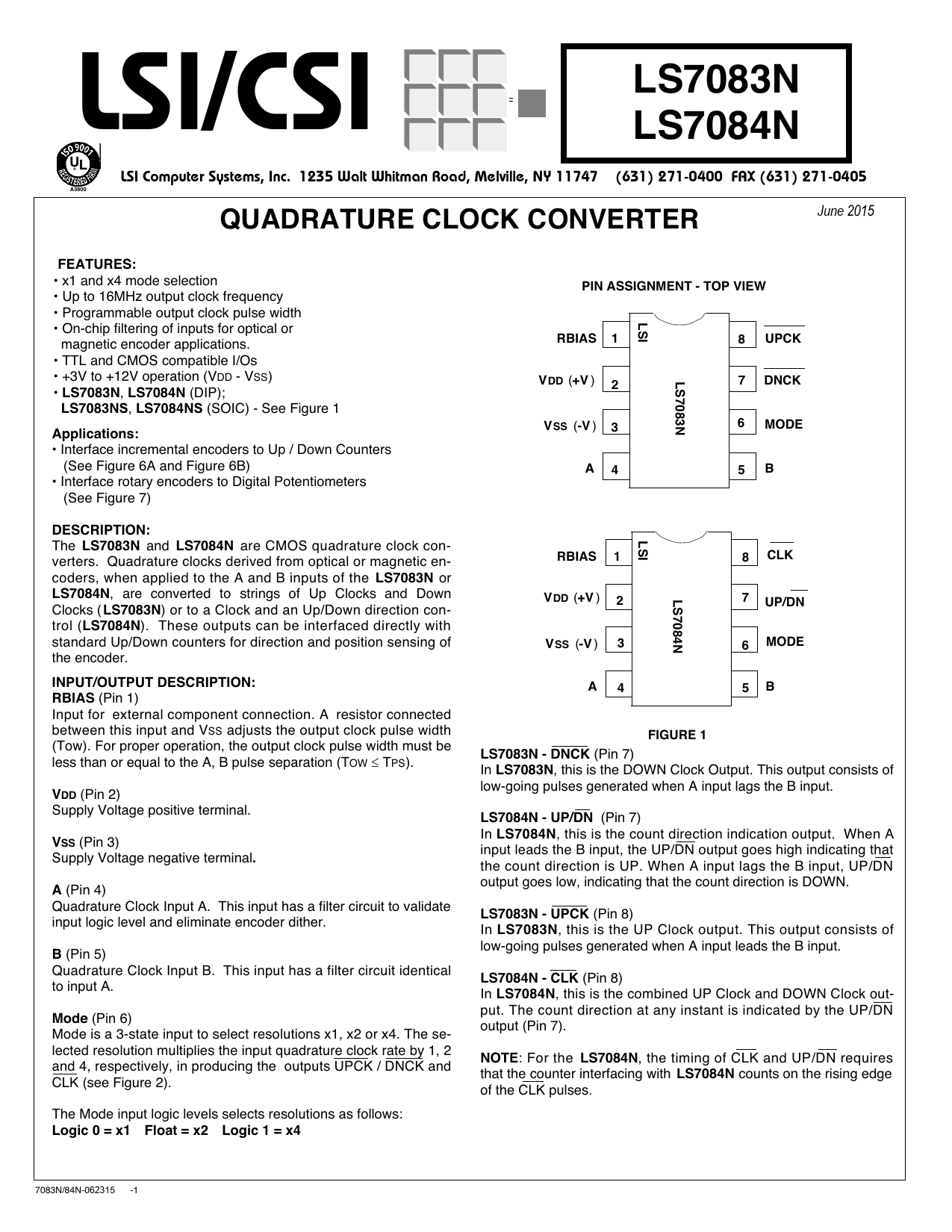 Datasheet LS7083N, LS7084N (LSI Computer Systems)
