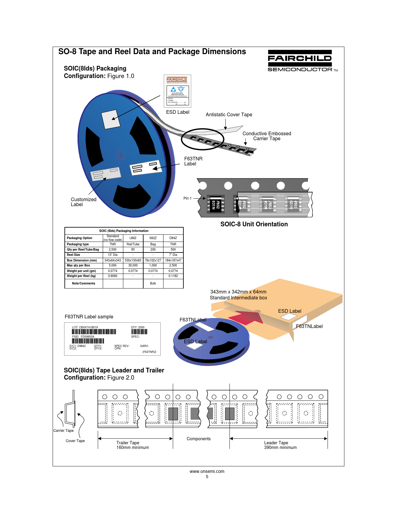 Figure 2.0 Carrier Tape Components Cover Tape Trailer Tape Leader Tape 160mm minimum 390mm minimum www.onsemi.com 5