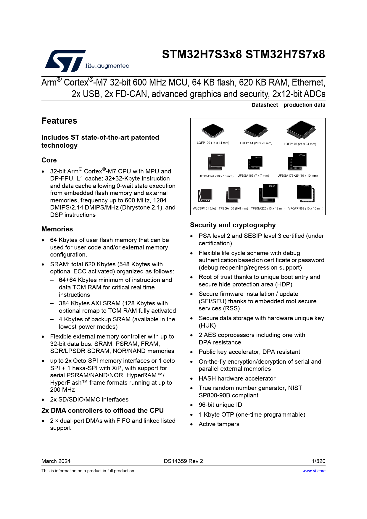 Datasheet STM32H7S3x8, STM32H7S7x8 (STMicroelectronics)