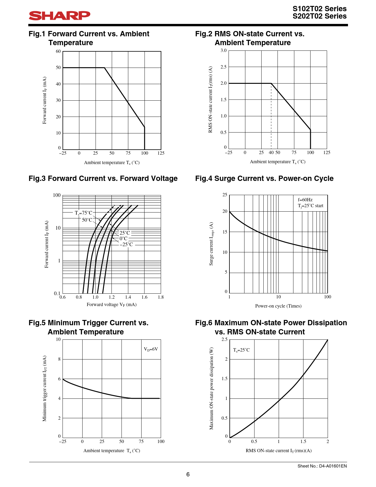 S102T02 Series S202T02 Series. Fig.1 Forward Current vs. Ambient. Fig.2 RMS ON-state Current vs. Temperature