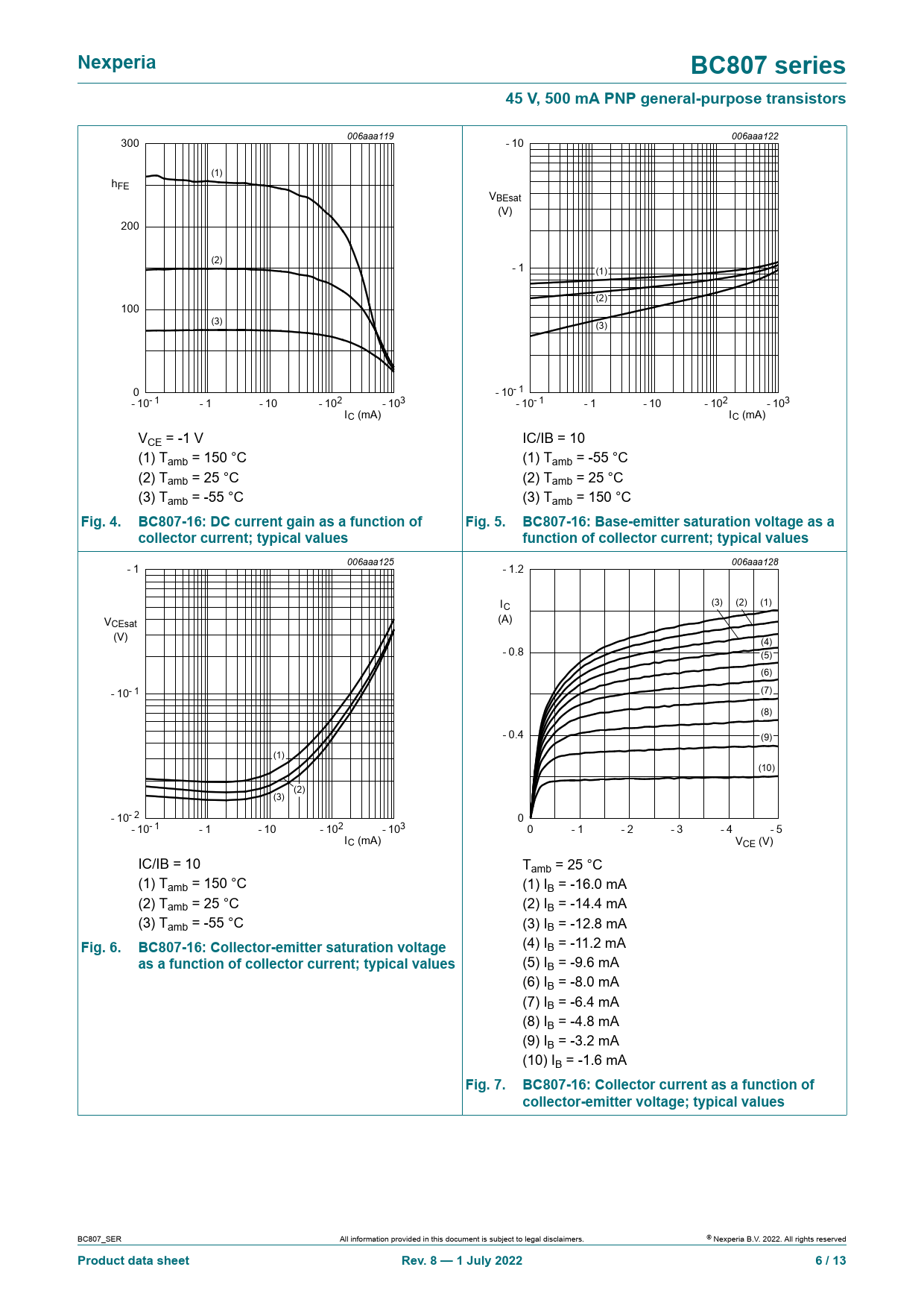 | Páginas / Página | 13 / 6 — Nexperia. BC807 series. 45 V, 500 mA PNP general-purpose transistors. … |
