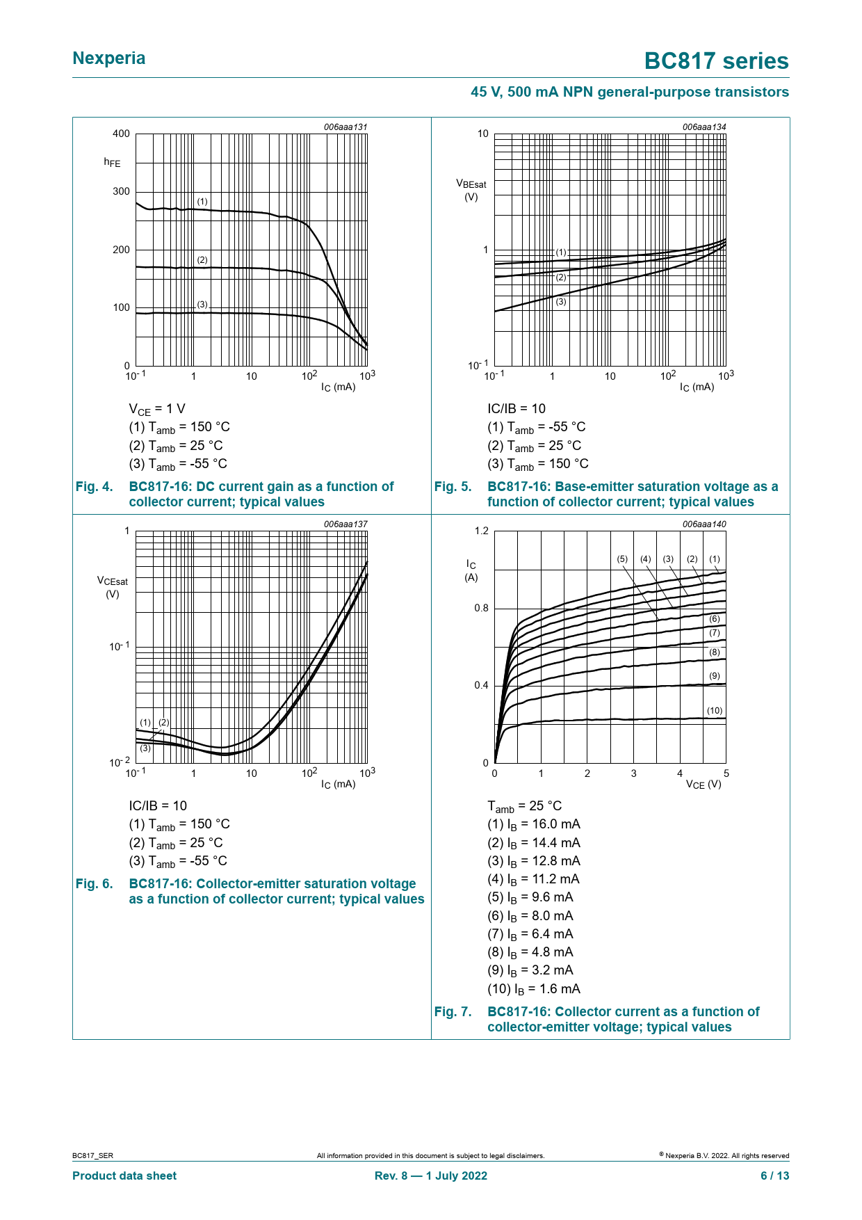 | Páginas / Página | 13 / 6 — Nexperia. BC817 series. 45 V, 500 mA NPN general-purpose transistors. … |