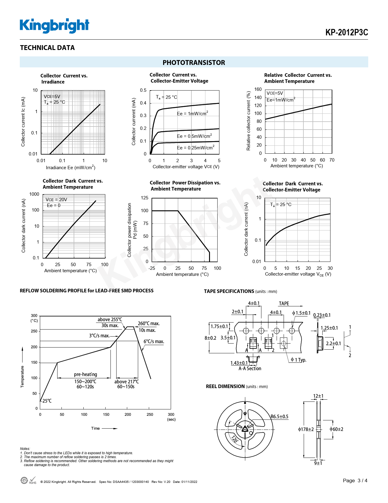 | Páginas / Página | 4 / 3 — KP-2012P3C. TECHNICAL DATA. PHOTOTRANSISTOR. Collector Current vs. … |